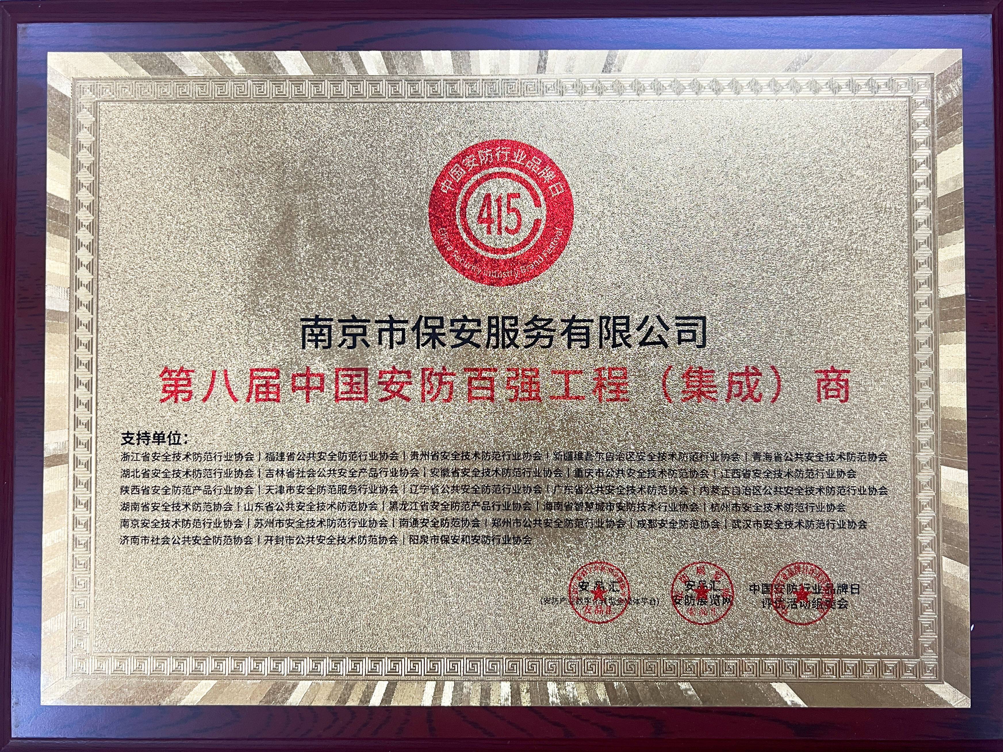 第八屆中國(guó)安防百強(qiáng)工程(集成)商榮譽(yù)稱號(hào)